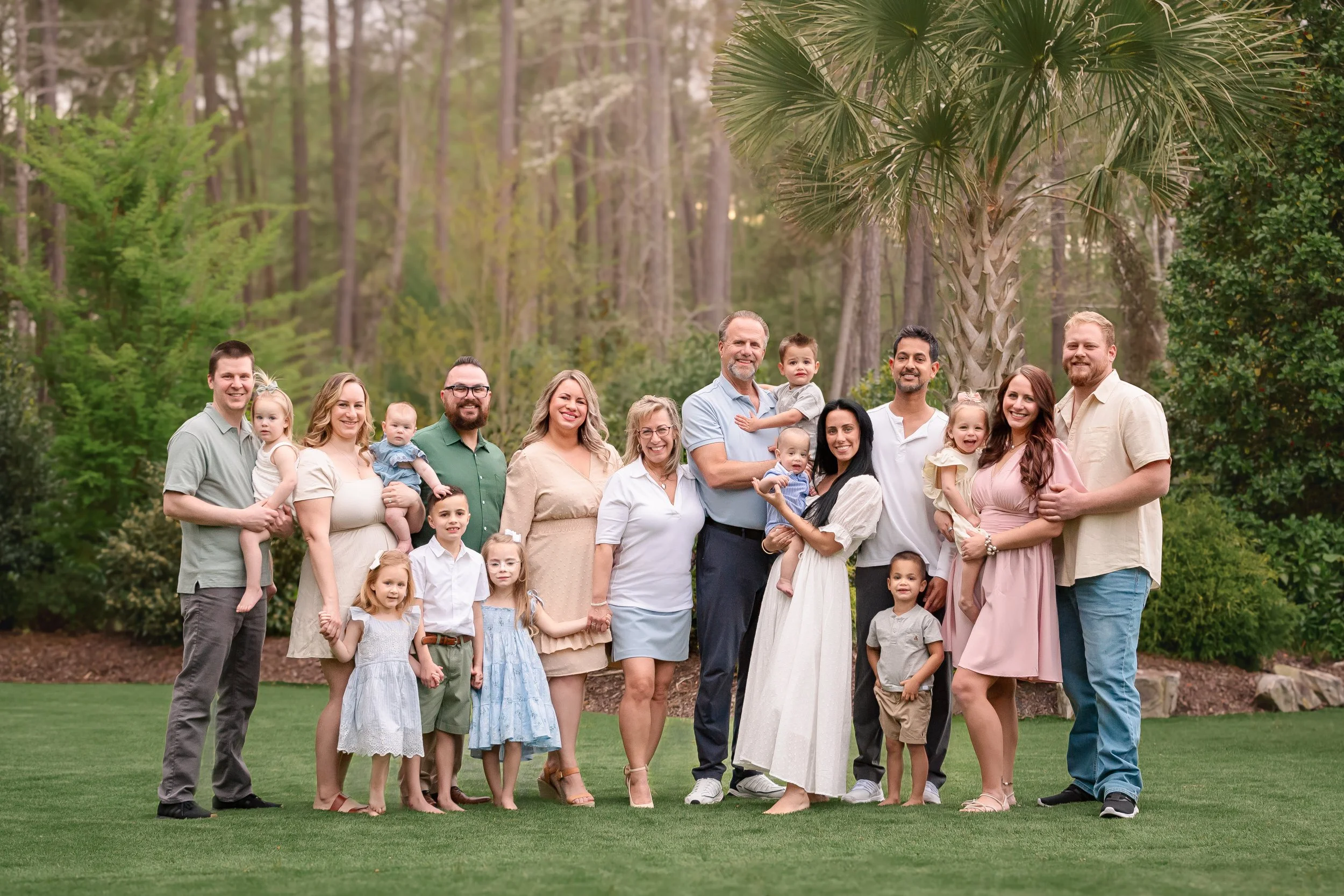 Extended family sessions are carefully structured to balance efficiency with artistry, ensuring every relationship is thoughtfully documented. Drawing on extensive experience working with large groups, I help coordinate locations that accommodate multiple households, offer wardrobe guidance to create a cohesive look, and confidently direct groupings so the session moves smoothly. The result is a polished but genuine experience that honors both the full family story and the individual connections within it.